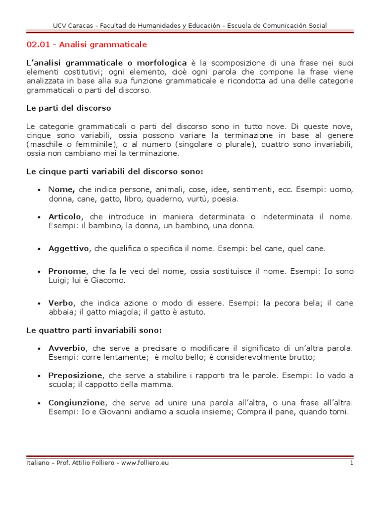 L'analisi grammaticale viene fatta nel contesto della frase da analizzare, cioè, se una parola ha. I nomi sono la prima parte del discorso che viene affrontata in classe ed è la prima occasione per mettere alla prova i processi logici e mnemonici dei bambini. Analisi grammaticale scheda online n. Ci sono alcune parole che lasciano pochi dubbi: Le categorie lessicali (o grammaticali) dell'italiano sono nove, cinque variabili.